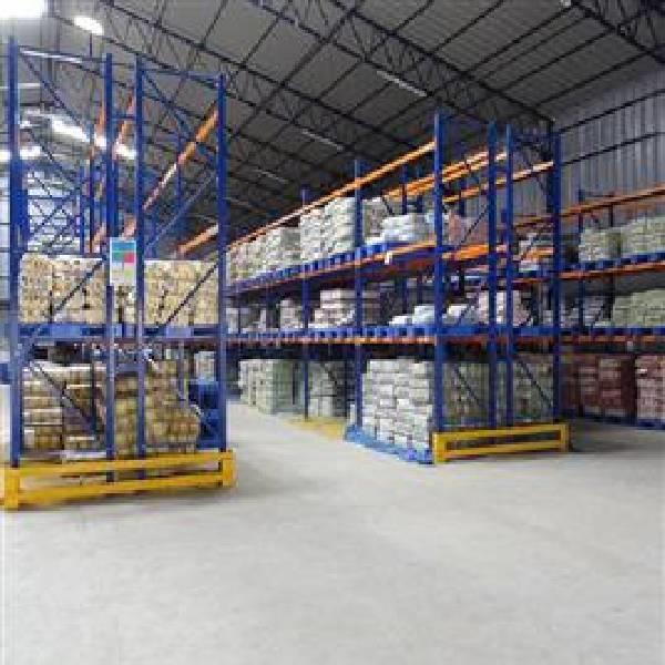 Heavy duty pallet racks made of iron. Designed as a free-standing unit for warehouse applications. Provides robust storage solutions for industrial needs.