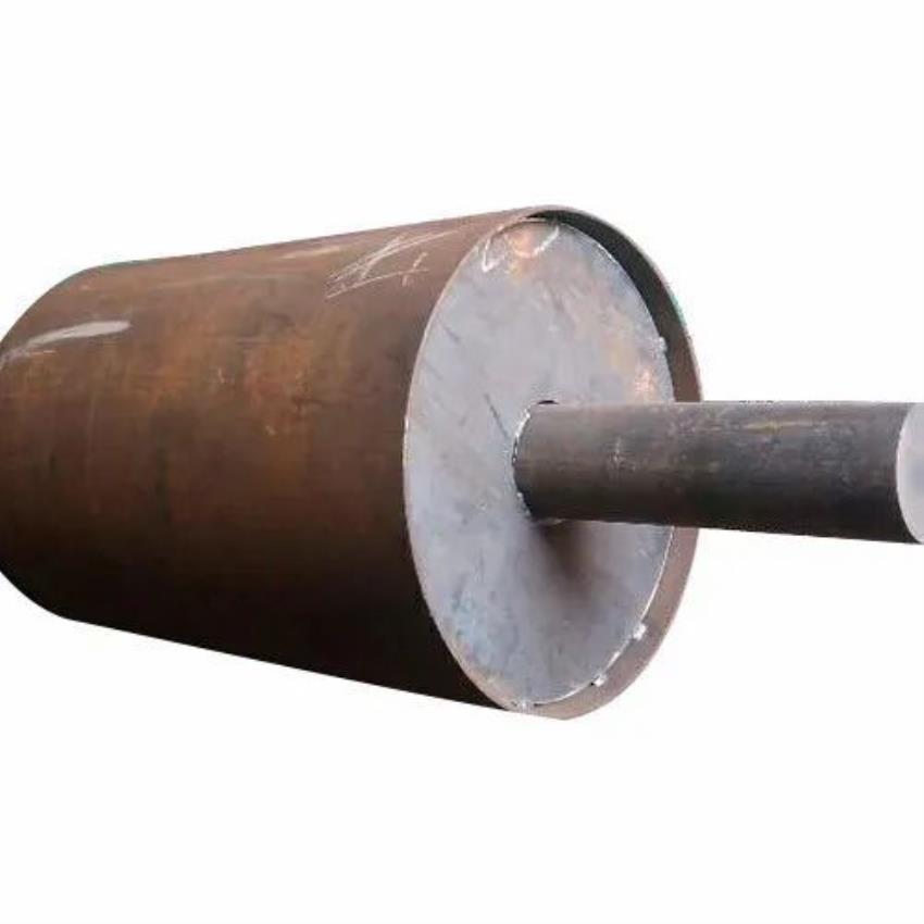 Cylindrical iron industrial roller machine. Features a shore hardness of 4-5 and yield strength of 50 MPa. Designed for industrial use.