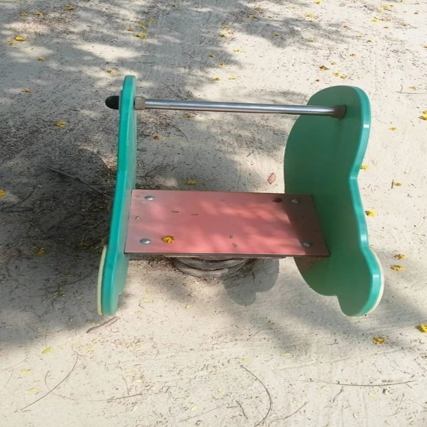 Durable iron spring rider for playgrounds, suitable for children aged 3-7 years. Features a color-coated finish for safety and longevity. Designed for single-rider use.