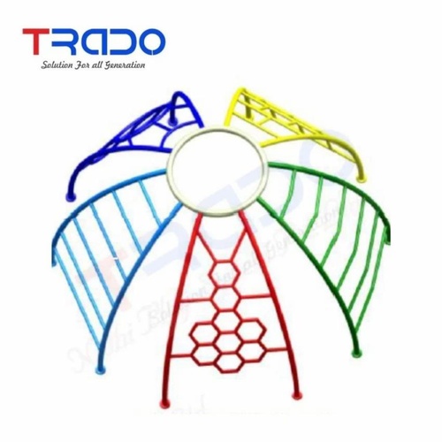Iron playground climber equipment with 8 ft diameter. Supports 5 children for climbing. Requires a 10 ft safe play area. Ideal for recreational spaces.