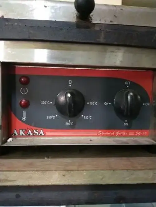 Iron sandwich press machine with a 3-sandwich capacity. Features advanced functionality and a grey finish. Suitable for all applications. Made in India.