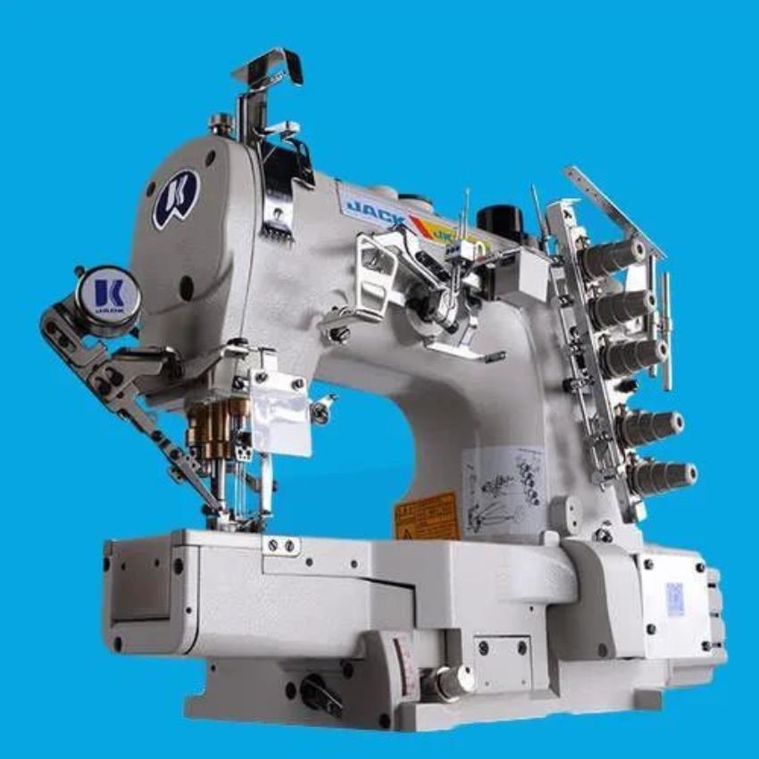 Automatic Jack cylinder bed interlock machine for the textile industry. Features a 5000-6000 stitch/min speed and 4mm max stitch length. Stainless steel body, 54kg weight.