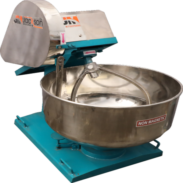 Jackson stainless steel automatic flour kneading machine with 30-35 Kg capacity. Features a 1-2 HP motor, 280V power supply, and dimensions of 1000x550x850 mm for commercial bakeries.
