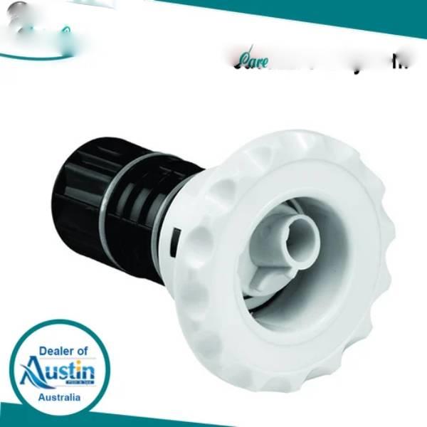 Standard size white plastic Jacuzzi jet system. Designed for enhancing jacuzzi hydrotherapy experiences. Durable construction for long-lasting performance in aquatic environments.