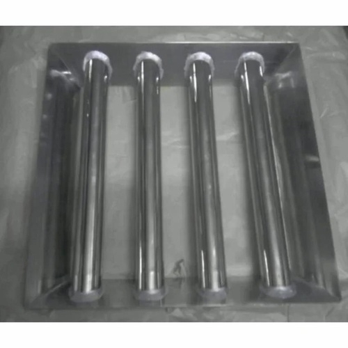 Stainless steel hopper magnet, N38 grade, available in round and square rod shapes. Sizes range from 100 to 500 mm. Minimum order quantity of 1.