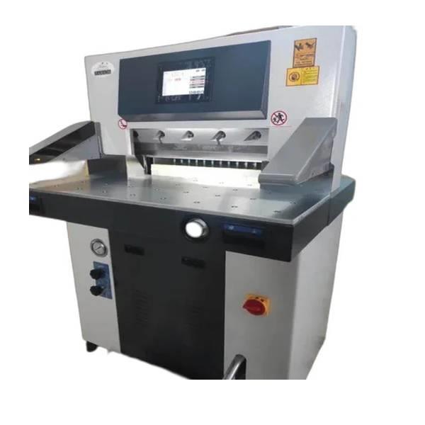 JH530 Double Hydraulic Paper Cutting Machine. 220V, 50Hz, 2 HP. 24-inch cutter, 35 cuts/min, 80mm max height. Mild steel pipe. 10 micron accuracy.