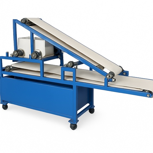 Semi-automatic SS 304 construction. Produces 40-100 kg/day. Features 3 phase, 1 Hp motor. Customizable dimensions: 6.6x2x4.5. Ideal for mini papad sizes.