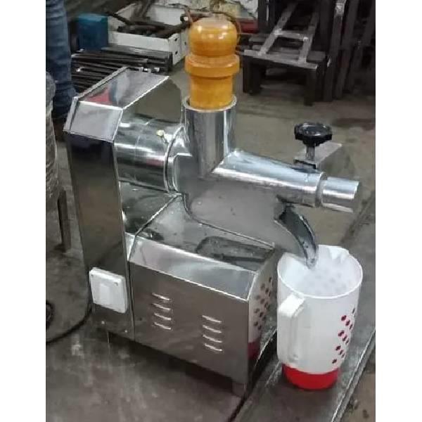 Semi-automatic juicing machine with 150-200 glass capacity. Handles oranges, pineapple, sweet lime, and lemon. Constructed from SS and aluminum, powered by 0.5W.