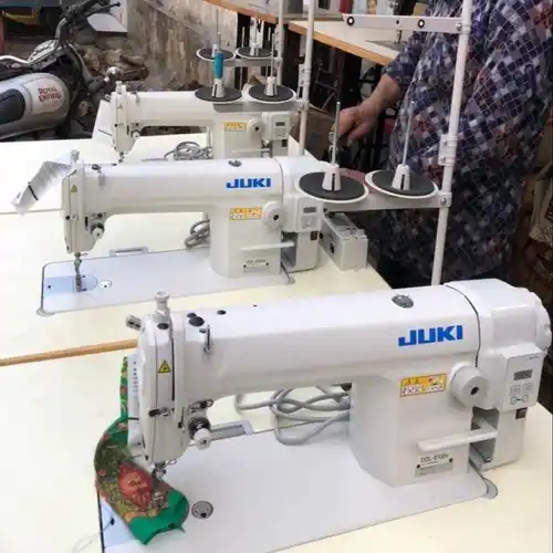 Juki DDL 8100e single-needle lockstitch machine. Ideal for medium-weight fabrics, offering consistent stitching and high speed for efficient production in apparel manufacturing.