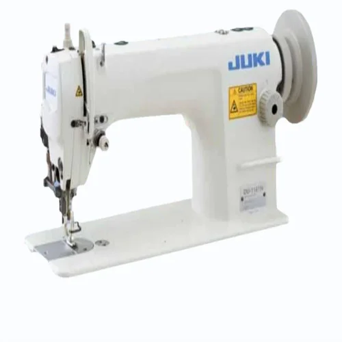 New, motor-operated JUKI DU-1181N top and bottom feed sewing machine. Delivers up to 2000 stitches per minute with a 9mm max stitch length for heavy-duty applications.