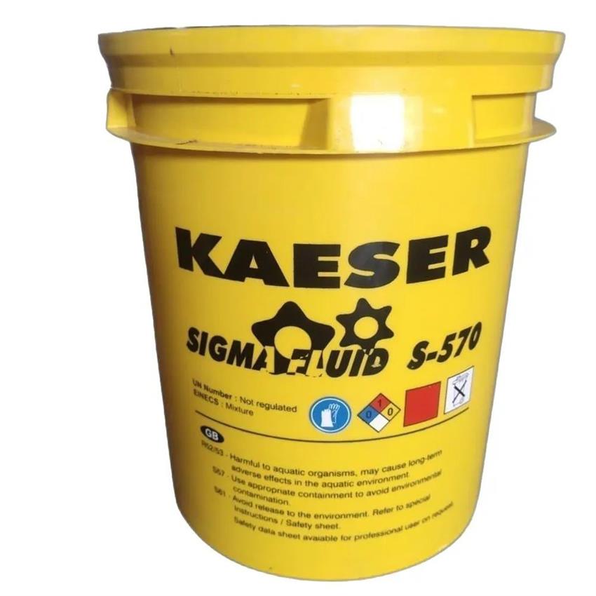 Kaeser Grade A compressor oil for rotary screw machines. Industrial lubrication in a 20-liter bucket. Yellow in color, model S-570.