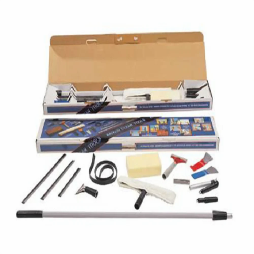 Aluminum alloy glass cleaning kit for professional use. Includes scraper, sponge, mop, and handles. Features a rubber squeegee and is packaged in a box.