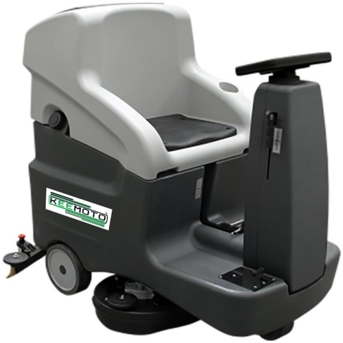 Battery-powered ride-on disc scrubber with 630mm brush diameter, 80L solution tank, and 160Kg weight. Features 400W suction motor, 855mm squeegee width, and 3520 m2/h performance.