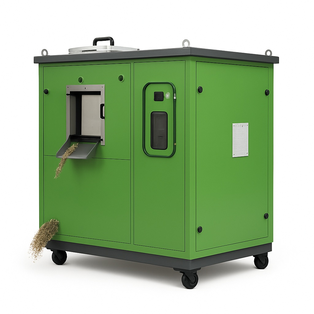 Kirloskar iLand organic waste disposal machine for composting. Constructed from MS material, producing fully digested compost. Model designation: iLand.