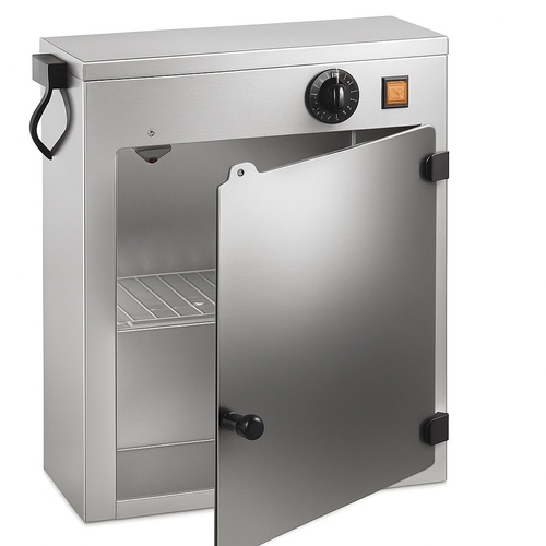 Compact knife sterilizer machine, dimensions 24x20x21 inches. Ensures efficient and hygienic sterilization for kitchen knives. Essential for professional culinary environments.