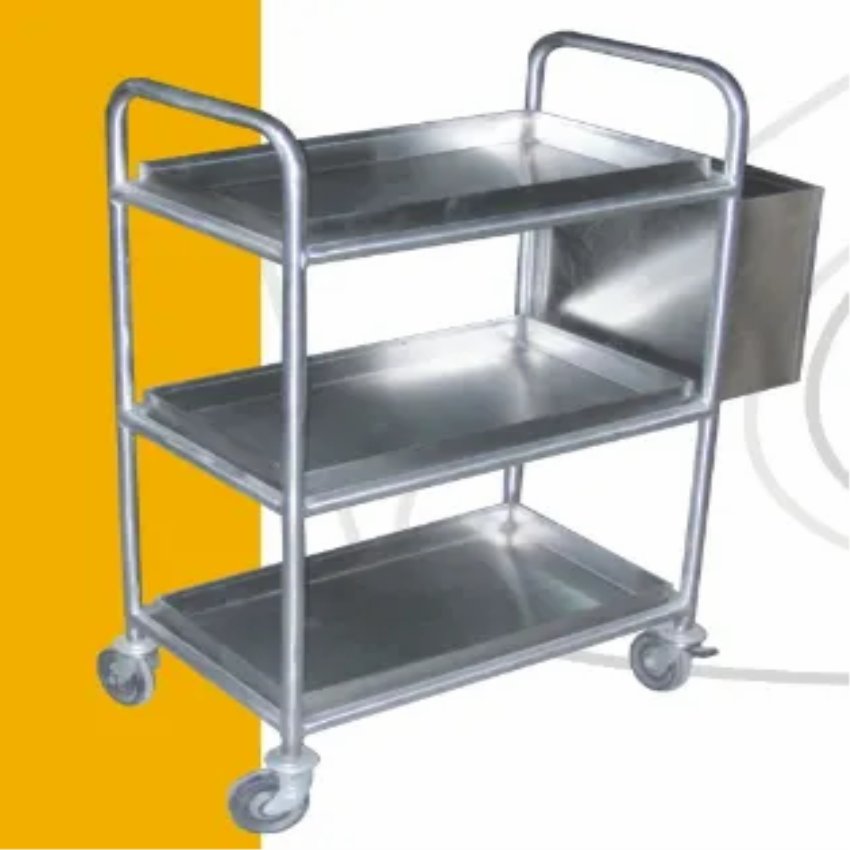 This kitchen trolley provides ample storage and transport for food and kitchenware. Its sturdy construction ensures durability for commercial and home use, facilitating efficient organization.