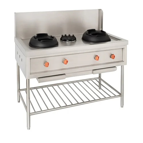 KLH 3-burner LPG commercial cooking range in SS 202 grade stainless steel. Silver color, made in India, ideal for restaurant applications.