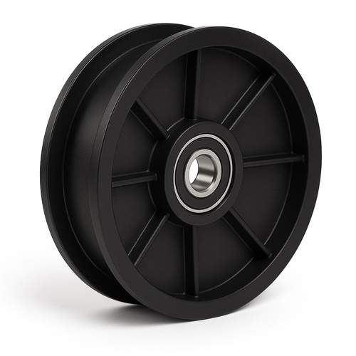 Durable plastic automotive pulley, single groove design for manual operation. Features a 3-meter standard lift capacity and 0.5-ton load capability. Black color, ideal for gym cable systems.