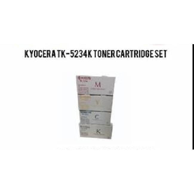 Kyocera Tk-5234 Toner Kit Set for Printers. Includes Cyan, Yellow, Magenta, and Black colors. Model number Tk5234 toner kit, designed for comprehensive color printing.