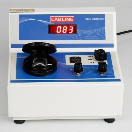 Labline Digital Turbidity Meter with ABS body. Features a 3-digit LED display, 2% FSR accuracy, and operates on 230V AC. Weighs approximately 1 Kg.