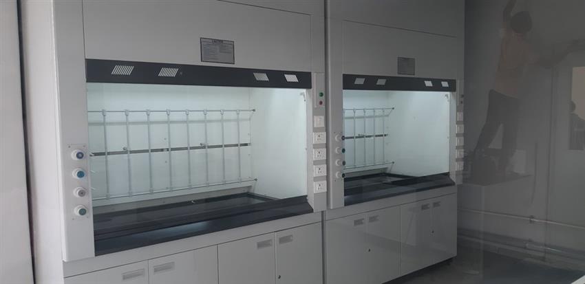 This laboratory fume machine offers customizable sizes from 4 to 7 feet. Features PP FRP ducting and chemical storage. Available in benchtop or walk-in types. Color as per client requirement.