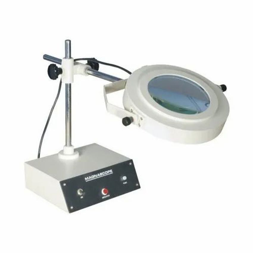 This laboratory magnascope operates on 220V electricity with a 50 Hz frequency. Packaged in a box, it is designed for laboratory use.