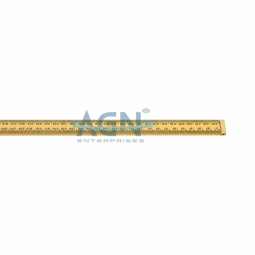 Seasoned hardwood meter scale for laboratory use. Features smooth polish with clear varnish. Model: AGN- PH145/2. Made in India.