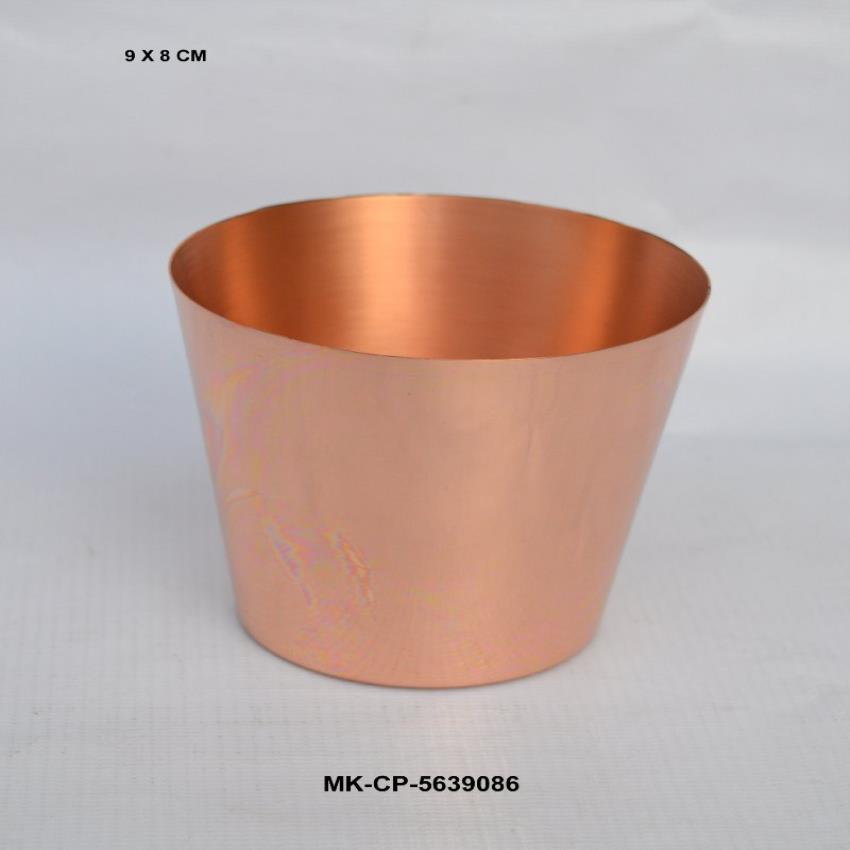 A plain, lacquered copper wax glass for candle lighting. Made with 97-98% copper purity, this glass offers a long-lasting shine for wedding decorations and gifts.