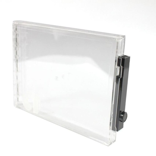Transparent rectangular plastic safers for merchandise security. Protects items from theft with a durable, clear plastic construction.
