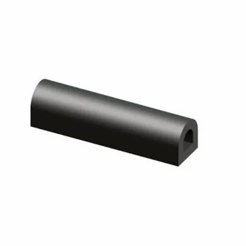 Black rubber D fenders, 3000 x 150 x 75 mm dimensions. Durable construction for maritime applications.