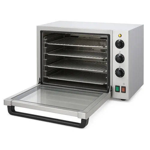 Automatic 4-tray electric convection microwave machine for bread/bun baking. Large size, single door, stainless steel body. Ideal for commercial bakery use.