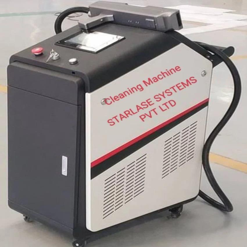 100W fiber laser cleaning machine with air cooling. Operates at 1000nm wavelength, 220-240V, 50Hz, and 5-40°C working temperature. Efficient for various cleaning tasks.