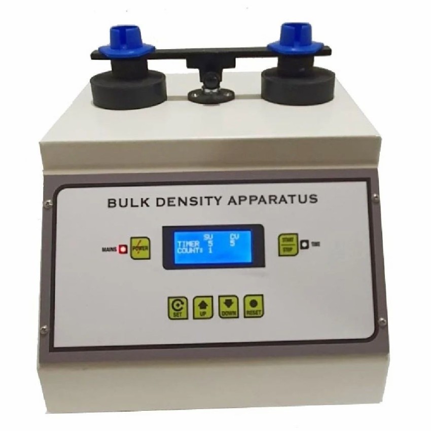Mild steel, powder coated laboratory device with 100 ml capacity. Operates at 50 Hz and 220 V for accurate bulk density testing.