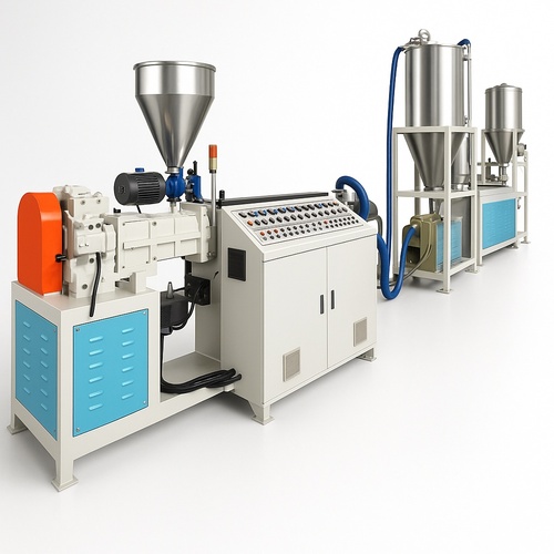 This automatic LDPE PVC compounding extrusion machine operates on 50/60 Hz and uses 0.22-0.26 Units/Kg power. Designed for industrial use, it features semi-automatic automation.