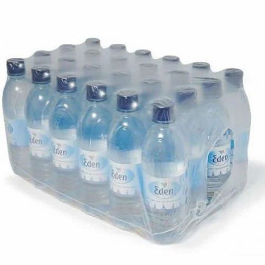Transparent plain LDPE shrink wrap film for bottle packaging. Supplied in 50 KG rolls.