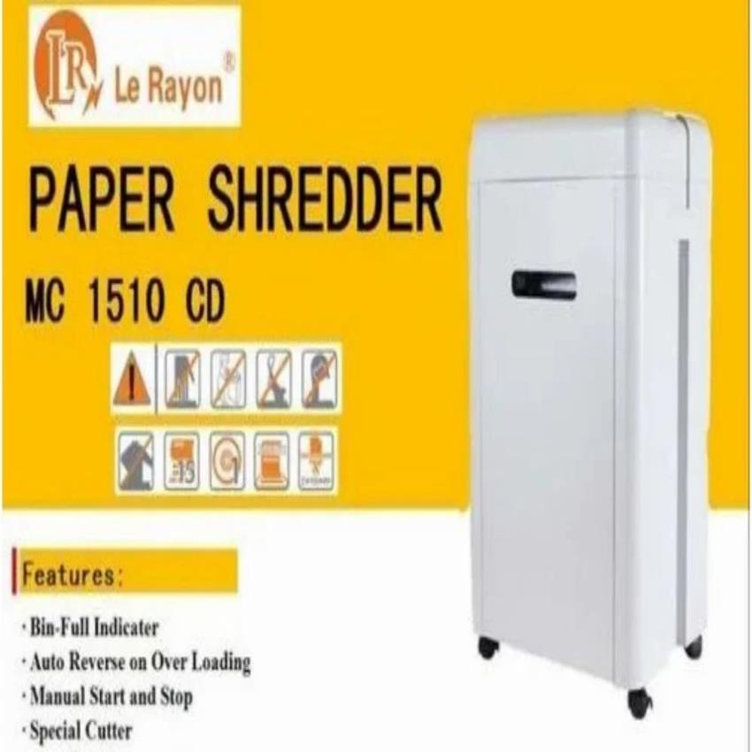 Le Rayon LR1510 mini paper shredder shreds 15-17 sheets per pass. Features automatic operation, 27-liter bin, and 2x10mm shredded size for secure document destruction.