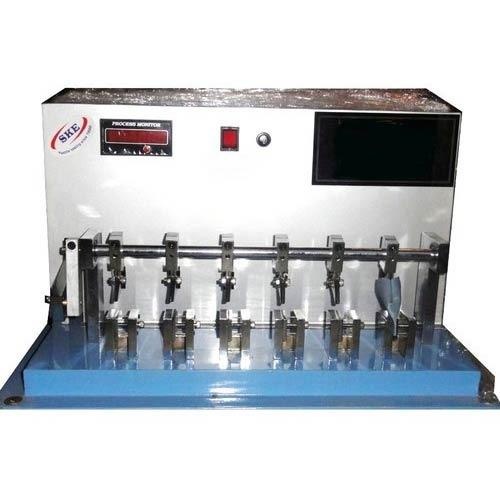 Machine for testing the flexibility and bending resistance of leather materials. Specifications provided separately.