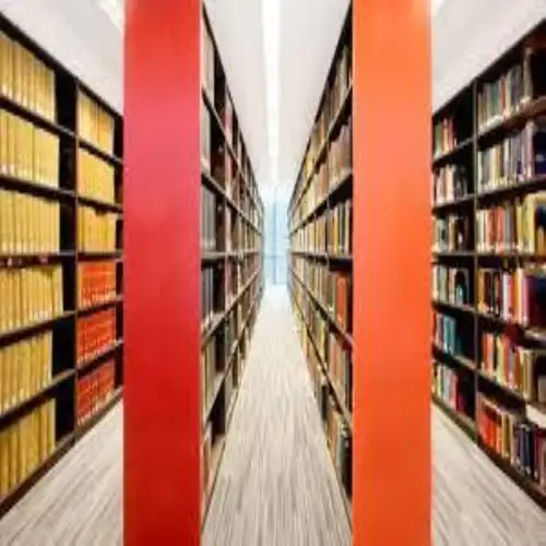 Durable library racks designed for efficient storage of books and materials. Constructed from sturdy materials for long-lasting use in library environments.
