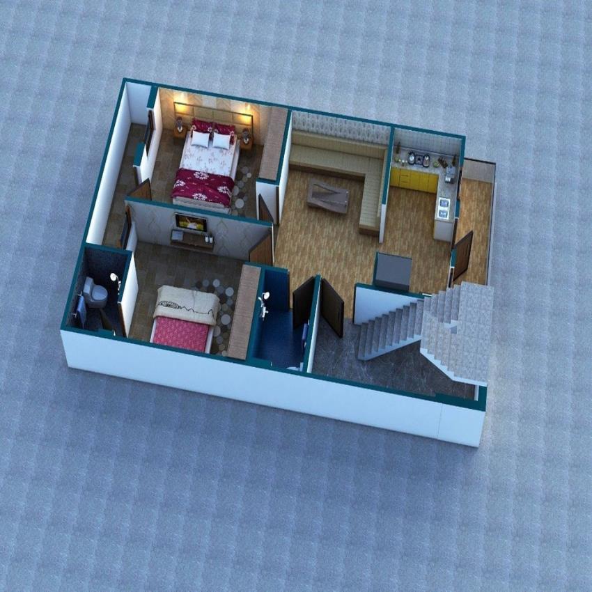 3D interior design services for living rooms in residential constructions. Architectural design focused on site location in Vaishali, Rajasthan.