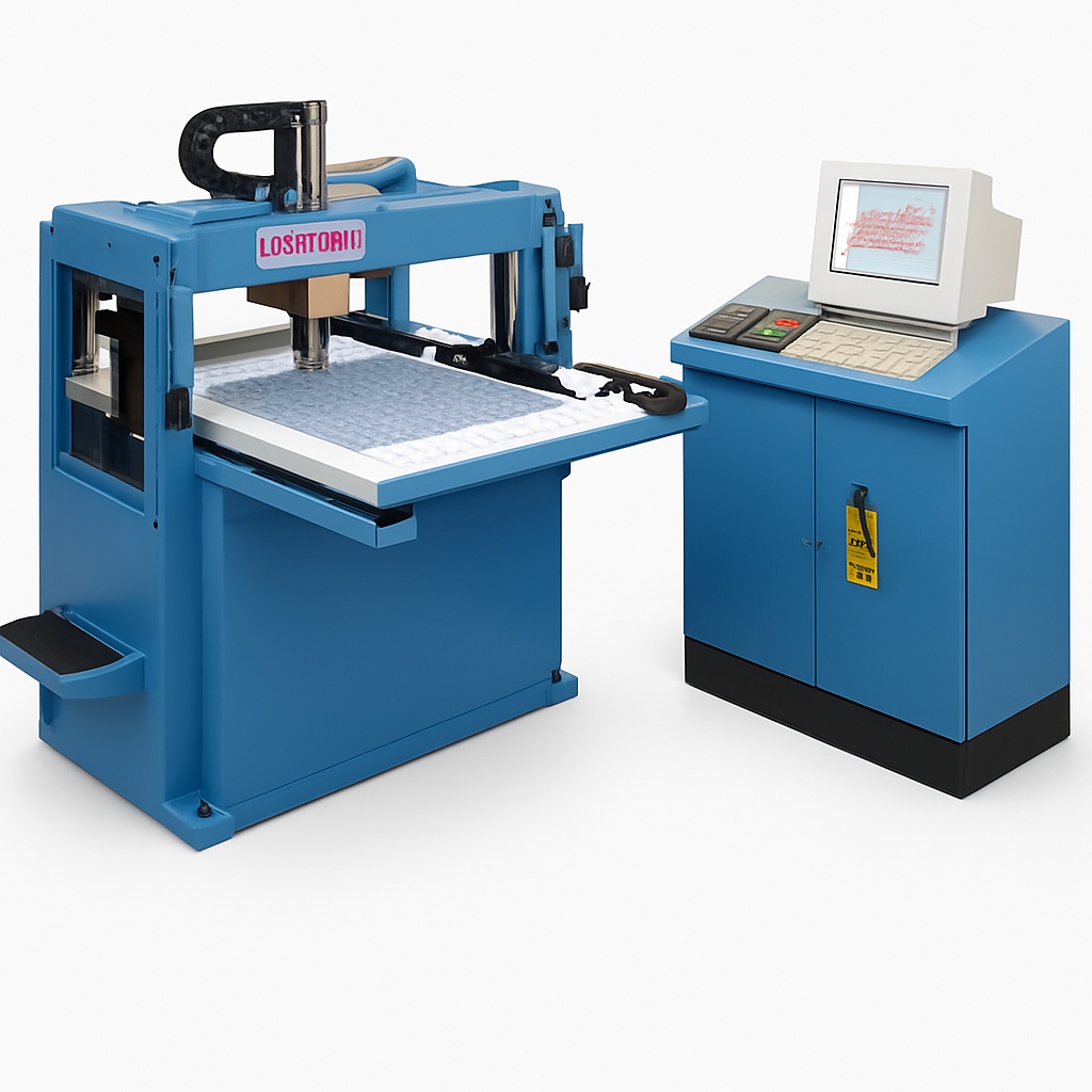 Industrial-grade Lombardi Label Punch Machine, Model LOMBARDI-MASTER 110. Engineered for robust industrial applications, ensuring efficient and precise label punching operations.