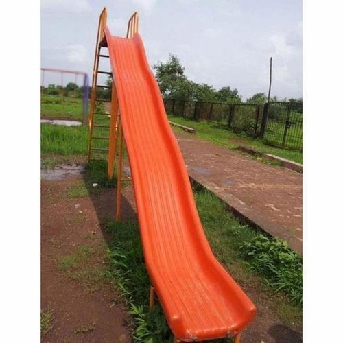 Long FRP Wave Slide (15 x 2 ft) with mild steel frame for outdoor use. Painted orange and yellow finish, accommodating 6-8 children.