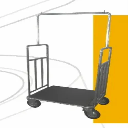 A practical luggage cart designed for convenient transport of baggage. Features a sturdy frame and smooth-rolling wheels for effortless mobility. Essential for travel hubs.