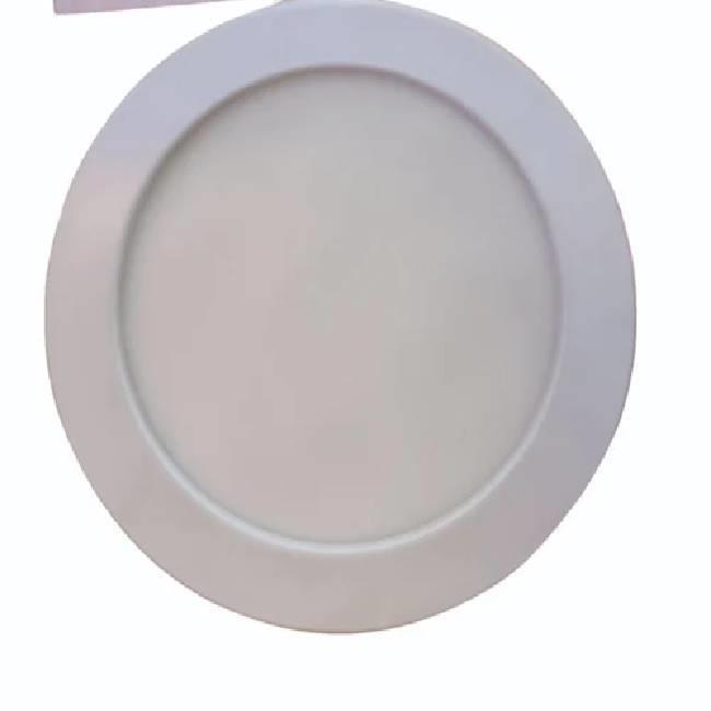 Round, 5W polycarbonate surface-mounted LED panel light. 6500K cool daylight with IP20 rating. Provides bright illumination.