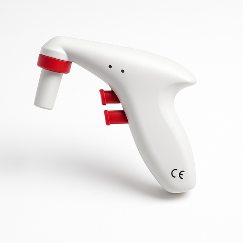 Plastic macro pipette controller device for labs, handling pipettes from 0.1 to 200 ml. Available in gray, magenta, and green.