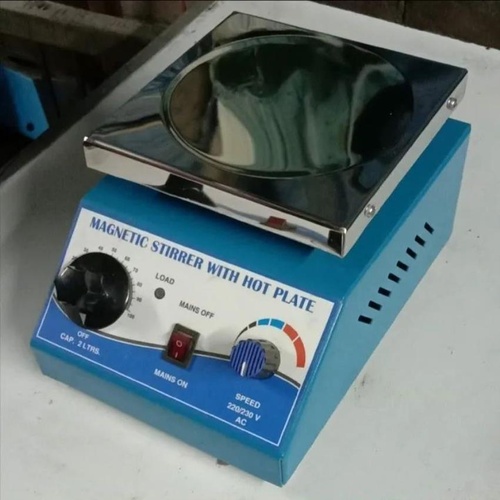 Magnetic stirrer with a durable Stainless Steel (SS) top for easy cleaning and chemical resistance. Designed for efficient sample mixing in laboratory settings.