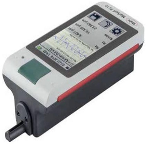 The Mahr MarSurf PS10 surface roughness tester features a touch screen interface. It measures roughness in a range of 0-350 micron, adhering to Ra, R-Max, Rz, Rc standards.