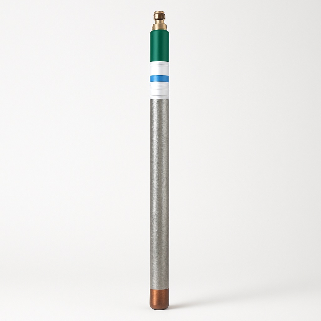 Galvanized iron earthing electrode. Maintenance-free design for domestic and commercial use. Max 3m length, 40-80mm diameter, 2mm thickness. New only.