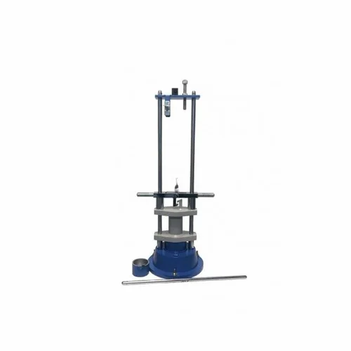 Manual Aggregate Impact Tester in blue. Made in India with a 1-year warranty. Ideal for laboratory use, offering reliable impact resistance testing for aggregates.