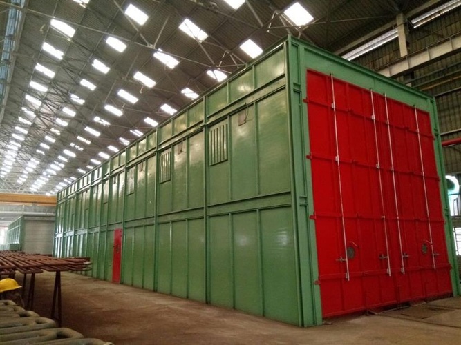 Manual blast cleaning equipment with semi-automatic operation. Offers a production capacity of 0-10 ton/day, powered by 440 Volt electric drive. Size is customizable.
