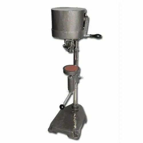 Manual bottle sealing machine made of mild steel. Powder-coated finish, suitable for sealing bottles and packing in boxes.